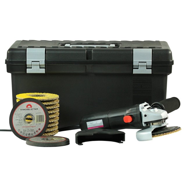 • Meuleuse d’angle à une main facile à utiliser avec une capacité effective pour les disques à feuillets jusqu’à Ø 125 mm. Garanti pour réduire la pression sur l’utilisateur.